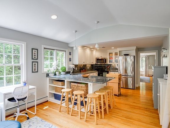 Located steps from Preston Beach on a quiet street, this 3+ bed 2.5 bath Colonial has a fantastic layout filled with large sunny rooms. On the 1st floor you will find a welcoming entrance with large living room with fireplace on one side and a dining room great for entertaining on the other. Off the dining room is an updated kitchen & open family room with a cathedral ceiling, views of the yard and a slider to a large screened-in porch. A 1/2 bath, mudroom/home office, garage access & lots of closets complete the 1st floor. The 2nd floor has a large main bedroom with a full bath, a second large bedroom with direct access to the 2nd full bath and a 3rd bedroom with a bonus room off it that could be a 4th bedroom & more great closet space. Off the screened in porch there is a private back yard with mature plantings & patio. A two car garage, central AC, newer heating system & a full unfinished basement with laundry area complete this home. 1st showings at OH 5-20 and 5-21 12:00-1:30.