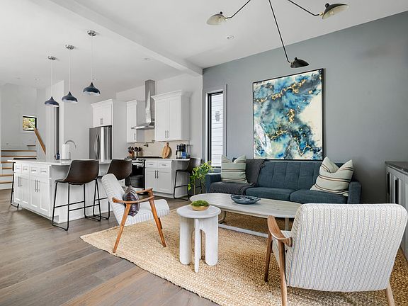 Step inside to a spacious and sun-filled first floor featuring an open-concept kitchen, living, and dining area. The fully stocked kitchen includes high-end appliances, a large island with bar seating, generous pantry storage, and an adjacent half bathroom for guests. A BBQ deck just off the kitchen makes outdoor entertaining effortless.