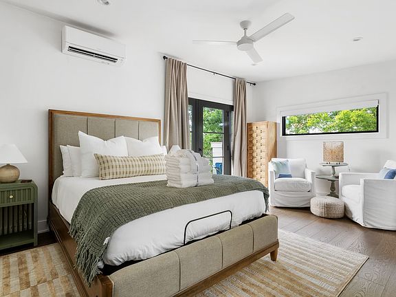 The top floor is home to the tranquil primary suite, complete with a queen Tempur-Pedic adjustable bed, walk-in closet, and luxurious en suite bathroom with a double vanity, soaking tub, and glass-enclosed rainfall shower. French doors open to a private rooftop patio the perfect place to sip coffee at sunrise or unwind under the stars.