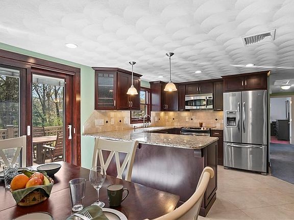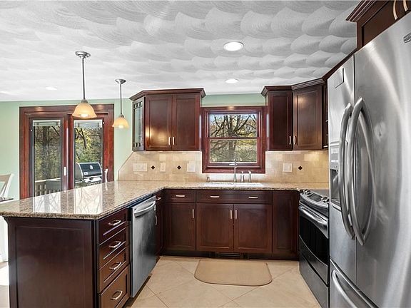 Turn-key raised ranch with beautiful updated kitchen, 3 bedrooms, office, two full bathrooms, finished basement, and a large backyard. The lower level's 24'x17' living room equipped with a wet bar and gas fireplace, is ready for your entertainment needs! In the Spring and Summer months, step outside to your huge backyard, stamped concrete patio, and your two-level deck with jacuzzi. Call for your private or virtual tour today!