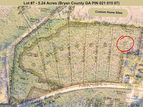 Cleared, Custom Home Site Lot #7 on 5.24 acres in the Ellabell Area. Large Lot with 95' Road Frontage. Beautiful Lot tucked away off the Main Roads makes for everyday Views and Privacy. Custom Builder in Place with many Designs to choose from, no Mobile Homes allowed. Homes Sites are located between Hwy 280 and Hwy 204, less than 7 Miles to I-16 & Hwy 280 Interchange, Less than 9 Miles to Hwy 80, Less than One Mile to Hwy 204, 20 Minutes to Pooler for Businesses, Shopping, Dining & Airport, 10 Minutes to Pembroke and 11 Miles to Ft. Stewart (Pembroke Gate).