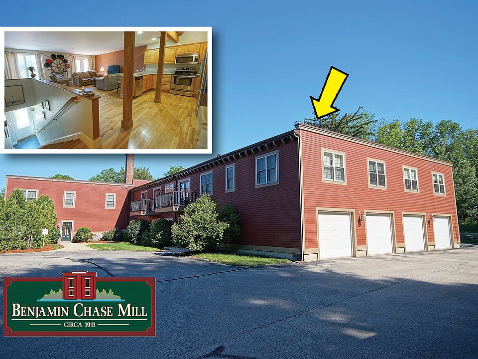 ENTER ON EAST DERRY ROAD ENTRANCE! 55+ ONE-OF-A-KIND Converted Mill Condo with Desirable Attached Heated Garage! The Benjamin Chase Mill consists of a converted historic woodworking mill and provides a picturesque setting for the 36 luxury condominiums. As you enter this stunning Penthouse Style Top Floor condo, original Wood Beamed Ceilings and Posts. This unit offers Open Concept Design, Ideal for Entertaining. Oak Hardwood Floors Flow throughout even the Bedrooms. The Tastefully Designed kitchen is ready for cooking your favorite meals with Granite Counters, Stainless Steal Appliances and Breakfast Bar. Large Deck off the Livingroom. The Master Suite offers a Large Walk-In Closet and a Spacious Master Bath, Granite Vanity Top & Tile Floors. Don't Miss this highly desired unit at the Chase Mill.