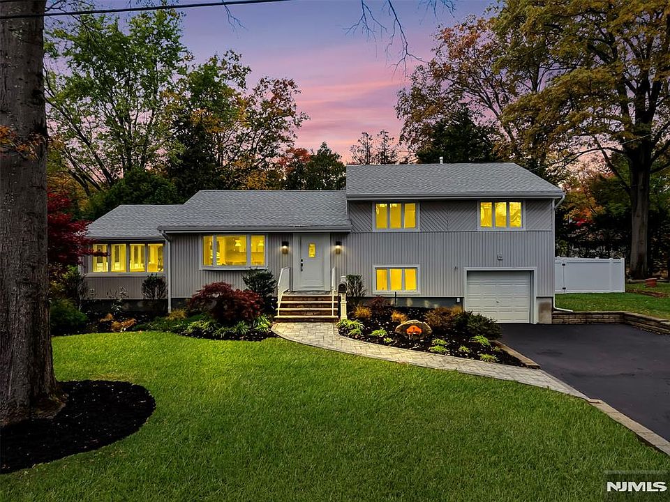 Welcome to this tastefully done modern split-level home in a desirable neighborhood in Ho-Hokus. This home has hardwood floors throughout, two zoned central air and forced heat, attached one car garage, a deck, fenced in yard and more! The first floor features a living room with a coat closet, dining room, kitchen with stainless steel appliances, taj mahal quartz, soft close cabinets, island, and more! The first floor also features a large primary with two closets, one being a walk in, and a beautiful primary bathroom. The second floor features a junior suite with an en-suite bathroom, another 2 bedrooms and a full bath. The ground level walk out to the garage has a large, finished space that can be a second living area or office space, a laundry room with a new washer and dryer, entry from the garage, and a utility room. Come see this beautifully done home with a spacious backyard in the heart of Ho-Hokus!