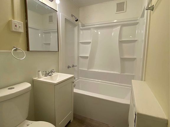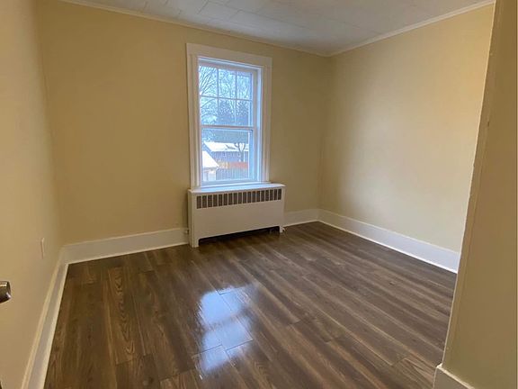 3 bedroom apartment with front sitting porch. All upstairs apartment. New paint and flooring throughout. Must provide completed application, ID and proof of income prior to viewing. This is for landlord and tenant efficiency and safety. Most housing providers require that the combined income of all household members equal 2.5 to 3 times the monthly rental amount. THE APPLICATION is available on Zillow and will be sent upon request. Plus, as in addition to rent electric and gas. Trash and water included in rent. If this AD is active the apartment is available. Animals are fine but completed application is still needed. We do accept public assistance but a completed application is still needed and rent amount is fixed. Coin operated washer and dryer available on property. Larger off street parking area, also lawn available.