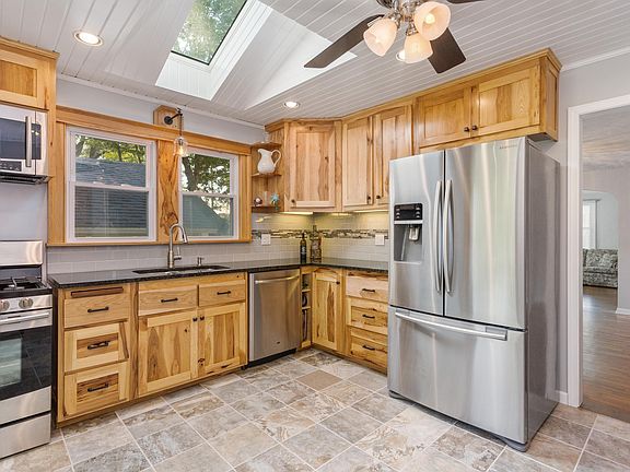 Remodeled 3 bedroom home is move-in ready! Features of this home includes a charming enclosed front porch accented with bead board walls and ceiling. A great place for relaxing on those lazy evenings. The kitchen features beautiful hickory cabinets and stainless steel appliances. The bead board ceiling is accented by a skylight. The Master Bedroom has a bonus room that would make a great walk-in closet, computer room or infant's room. Both bathrooms in this home are nicely tiled and feature walk-in showers. If you love entertaining, you'll love the beautifully landscaped back yard, accented with pavers and a fire pit that affords plenty of room for guests to relax. A great town to call home. Within a short distance to all of the amenities that Three Oaks has to offer.