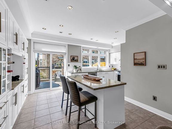 Not your typical townhouse. Chimes hits all the right notes. With its extra-wide floor plan, generous square footage (2,391 total), and abundant living space, this executive freehold townhouse feels more like a detached home than anything else. Beautifully updated with over $140,000 in owner updates, the interiors are equal parts polished and practical - big sunny windows, thoughtfully designed closet built-ins, and freshly renovated washrooms (two of the four!) make everyday living feel elevated. Bask in the luxuries of wood flooring throughout, popcorn free ceilings everywhere and ample pot lights. The open-concept kitchen, dining and living level is ideal for gatherings - wide, bright, and inviting - with a centre island, new appliances and a walkout to your west-facing deck complete with gas line for never-ending-summer BBQs. Upstairs, a king-sized primary retreat offers two closets and a spa-inspired ensuite, while two additional bedrooms keep family or guests comfortably close. A main floor den doubles beautifully as a home office or fourth bedroom, and the finished lower level adds that rarely found, extra living space you'll wonder how you ever lived without. A low-maintenance lifestyle awaits - with a double car garage and direct entry, you'll unload groceries (and kids) straight into the main level, rain or shine. And forget about shovels or lawn mowers - a modest monthly fee takes care of it all! Fall in love with this well-managed community with kind neighbours, visitor parking, and a park and playground just around the corner to round out the wish list. Perfectly positioned in South Etobicoke only moments to the charming shops and restaurants on The Queensway, plus GO Train, Sherway Gardens, Waterfront Trail in Mimico, groceries, library and all the highways and byways.