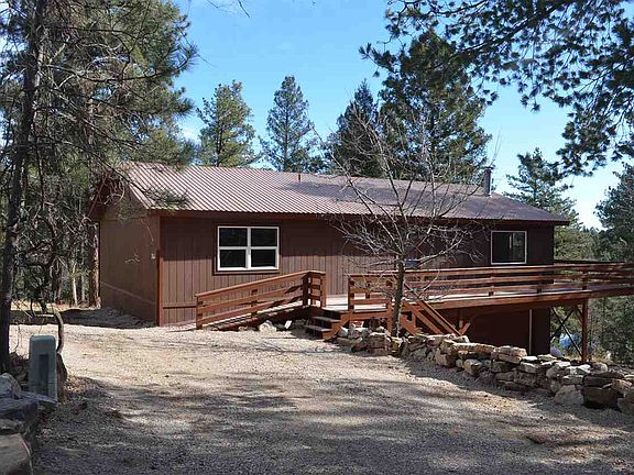 Home in prestigious subdivision of Cloud Country Estates just minutes from Cloudcroft has had a major remodel job. Home includes new: paint inside and out; flooring through the whole main level; new appliances; French doors and main entry door; converted back to a 2 bdrm; master suite bathroom completely rearranged and updated with tile shower and tub; grounds redone; garage redone; decks repainted; tile entry ways; new trim inside; and new cabinets. It also has an extra lot.