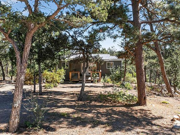 This charming & fully updated home offers a unique blend of comfort & nature, located just 30 min from ABQ. With forest views from every window, the sunny living area welcomes in ample natural light, complemented by an open floor plan that creates a spacious feel. The large bedroom is perfect for restful nights, while the wood-burning stove offers warmth on cool evenings. Enjoy the outdoors w/ 2 decks, space perfect for a garage or barn, plus direct access to nearby forest trails. Additional features include an over 3000-gallon water tank, accessible crawl space & an RV hookup, enhancing convenience and potential for this property. Included in the sale is the adjacent .59-acre lot at 5 Chula totaling 1.48 acres, providing even more space for your dreams to become reality!