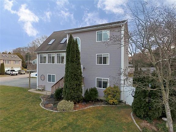 Northern Narragansett - 4 Bedroom Contemporary with panoramic views of river and wildlife habitat. The pride of this one owner home shows it's gleaming hardwood floors, updated systems, meticulous landscaping and attention to detail. For the larger family or investor a fifth bedroom and third bath is an easy upgrade. Third story balcony sitting room or home office has spectacular views. Two car oversized garage has extra work space and cabinetry, etc. Truly a comfortable one of a kind, well kept home that shows "pride of ownership." Narrow River boating access.