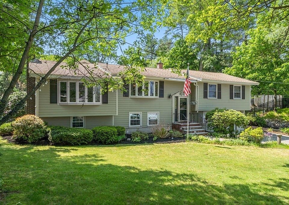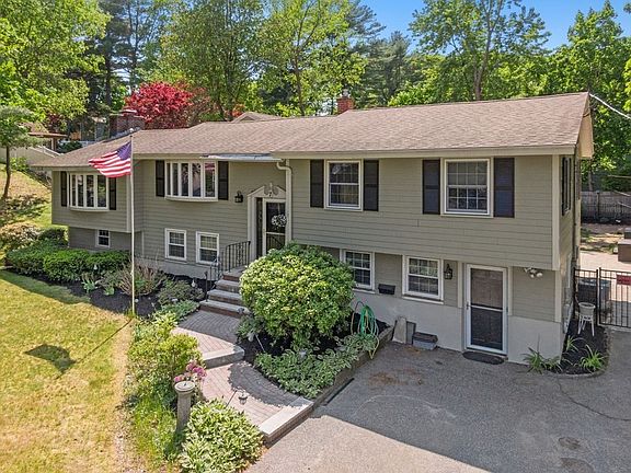 WEST PEABODY LOCATION! Remarkable property with in-law on lower level! Plenty of room for the entire family in this sensational home with lots of nice updates throughout. Dramatic living room with stone fireplace, cathedral ceiling and bow window for added sunlight .Dining room with HW floors and bow window for holiday entertaining, Nicely remodeled kit w/Schrock warm maple cabinets w/coffee glaze, double oven, Silestone counters and dining area. Spacious family room off kitchen w/cathedral ceiling, skylight, new designer bath, huge walk in storage closet and sliding doors that lead to a composite deck that overlooks a level fenced in yard with a pool and shed. Walk-in lower level in-law for easy accessibility offering nice separate living space for your family member. This space consists of an open floor plan with LIV/KIT,DIN area. Kit w/new quartz counters, bedroom with double closets and 3/4 bath. NEW GAS HEATING & CA 2022, mostly updated windows HW floors on main level.