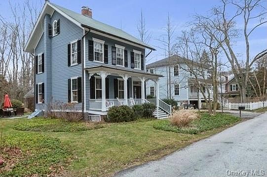 Beautiful Vintage mid 1800's Greek Revival 3 story Colonial in Historic district of Palisades across from Snedens Landing. Gorgeous detail through out ,high ceilings & large windows along w/ its many updates & features .Bonus extra large 2 car det garage w/ walk up storage loft (built in 2007)Great for collectors ,hobbyist & artists.Special features inc; beautiful vintage wide plank pine floors,stunning custom Victorian decorated ceilings in the living room & dining room,new kitchen 2015 w/ granite counters ,stainless steel appliances & turret dining area overlooking rear yard,nicely remodeled & updated baths.Other recent updates incl;new dishwasher,new shower in top floor bath, new boiler 2015, & re built front porch.Wooded area across st is protected land & cannot be built on.Great location w/short walk to Tallman state Park & Hudson River w/ great hiking & biking,the popular Filling Station & Burger works Eatery & only approx 15 min to the GW Bridge.