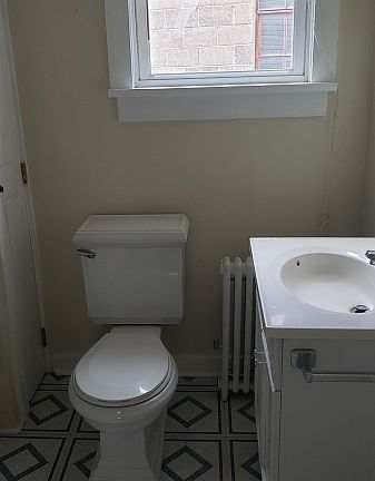 2 Bedroom Apt on first floor Quiet street .Close to train,bus, restaurants all shopping . ,Washer and dryer hookup in shared basement also room for storage.Brick patio out back with nice backyard.. Landlord pays heat,water ,sewer ,garbage and also the lawn service. NO PETS NO SMOKING! Tenant to pay first $100.00 towards repairs.