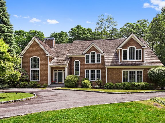 This meticulously maintained shingle style Colonial is set on over 3 acres and conveniently situated near both Bedford Village and Scott's Corners in Pound Ridge. The light-filled home, with double story entry and oversize windows, has a wonderful flow perfect for both informal living and gracious entertaining. The sunny master bedroom suite includes a lovely sitting area, large walk in closet, two additional closets and a spa bathroom. Two bedrooms connected by a full bathroom and guest bedroom connected by a full bathroom to an office/den complete the second floor. The lower level includes a bedroom, playroom, full bathroom and plentiful storage. The property is beautifully landscaped with perennial gardens, mature trees, slate patio with stone sitting wall and a Belgian block lined driveway leading to a three car attached garage.