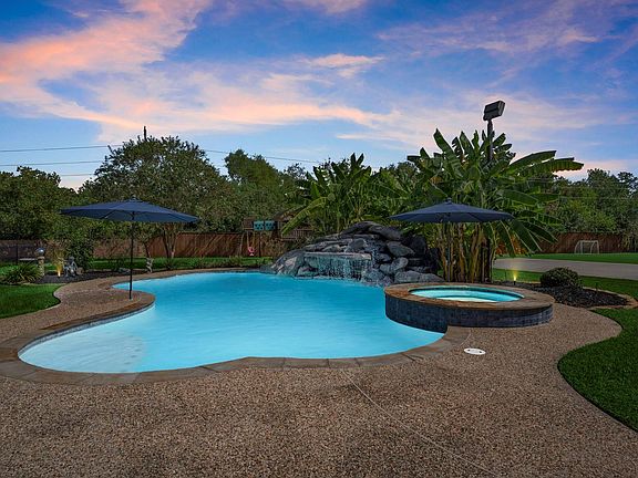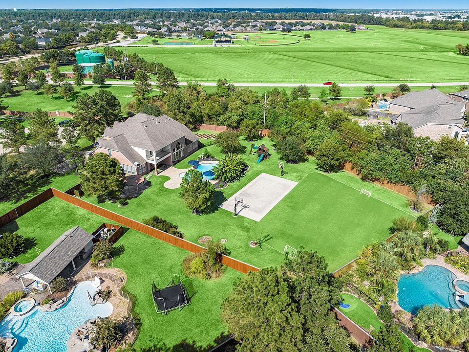 Welcome to this exquisite luxury home on over an acre in the heart of Gleannloch Farms near the equestrian center. You'll feel like you're living at a 5-star resort with this backyard that features a sparkling pool with a relaxing spa, thrilling slide, and cascading waterfall - ideal for cooling off on a hot day or unwinding after work. Behind the pool is a basketball court & turf soccer field for hours of entertainment and recreation. Inside, spacious living areas, high-end finishes, & sophisticated features create the perfect space for gatherings including a sunroom surrounded by 180 degree views of your stunning backyard. The gourmet kitchen has double ovens, over-sized island, breakfast bar, coffee bar & walk-in pantry, and the primary suite blends comfort, function, and luxury into a private sanctuary with his/her vanities & closet with built-ins. Game room with balcony, tech area, & 4 more bedrooms offers everyone their own getaway. Great location for shopping/dining/commuting.
