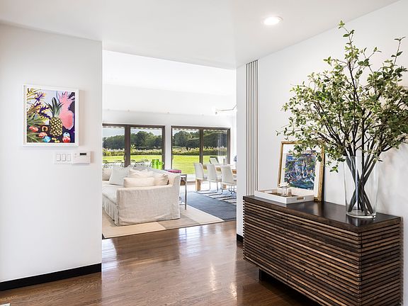 This one-of-a-kind property in Water Mill south's Mecox Landing complex is a true gem. It is the finest 1-story unit with endless water views of Hayground Cove and Mecox Bay. Recently renovated with high-end finishes and vaulted ceilings throughout, 3 en-suite bedrooms, 4.5 baths and 2,225A± sq. ft. of light filled living space with water views from every room, plus an additional 2,110A± sq. ft. in the finished lower level. As you enter the front door your eye is drawn through the living space to the expansive deck, lawn and endless water views of Mecox Bay all the way to the ocean. The open concept floor plan includes a light filled entry foyer, large living room with fireplace, dining room and open kitchen with walls of glass and sliders that lead seamless out to multiple decks for dining, sitting and lounging, with water views and spectacular sunsets. Continue down the hall to a spacious primary suite with fireplace, spa like bath, walk in closet, water views and sliders out to a private deck. The first floor also includes two large en-suite guest bedrooms and a powder room. The finished lower level includes a media/den room, home office, full bath, gym area, laundry room and large storage area which provides for additional finished space. And, let's not forget the resort-style amenities, including a new heated gunite pool, new pool pavilion with baths, tennis and pickleball courts, a private dock for boats, and racks for kayaks and paddle boards on majestic Mecox Bay. All this and conveniently located close to ocean beaches, Bridgehampton, Water Mill and Southampton villages. Not to be missed.