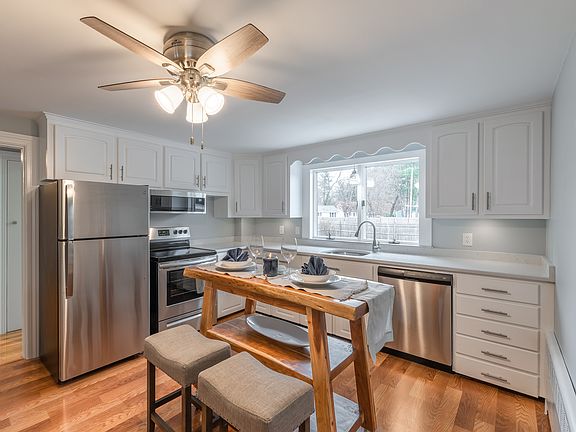 Freshly updated and remodeled ranch on an expanded lot in a desirable neighborhood ready for its next owner! Gorgeous hardwood floors greet you as you walk into the freshly painted and sun-soaked living room complete with a cozy fireplace. The open-concept feel is great for entertaining, as the living room overlooks the sophisticated kitchen which features new stone countertops, stainless appliances, and new flooring. Three bedrooms with closet space and hardwood flooring as well as a completely remodeled full bath to round out the first floor. The lower level includes a spacious bonus room with wet bar, half bath, and closet space with laundry hook-ups. An additional utility room can serve as workshop or storage. Outside you'll find a backyard oasis, complete with ingound pool, patio area and fenced-in yard. A three season porch off the kitchen provides access to the house and the huge two car garage. Close to Nabnasset Lake, beach (rights included) and golf course.