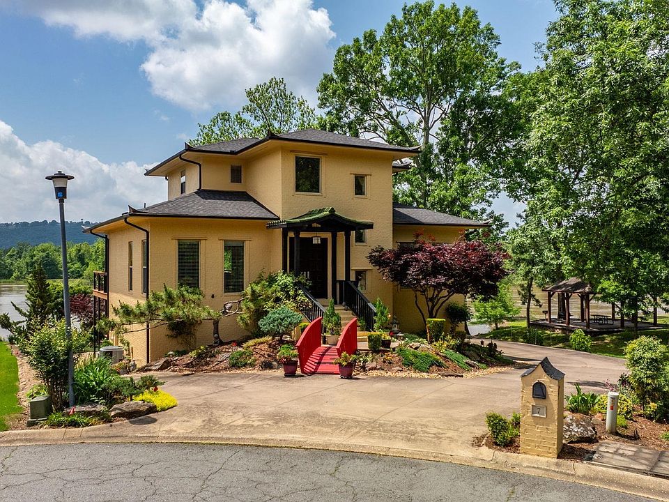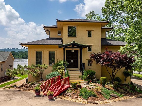Welcome to this one-of-a-kind home in Maumelle! A uniquely designed home with a MILLION DOLLAR river view! This home invites in all the beauty of the Arkansas River and the gorgeous designs of the gardens that speak peace and tranquility. Soaring ceilings in the entry leads to a generous living area, custom kitchen with upper-end appliances and sleek finishes! Main level with office, formal dining and primary suite with luxurious bathroom with custom designs never seen before. Upstairs offers two bedrooms with full bath, lower level offers a guest suite with tub and separate walk-in shower. Private patio off guest room. Outside you can enjoy relaxing on the huge deck off the main level as you take in the evening sunsets. Other features include a sprinkler system, workshop, and so many extras! Stunning river views from the comfort of your home await you!