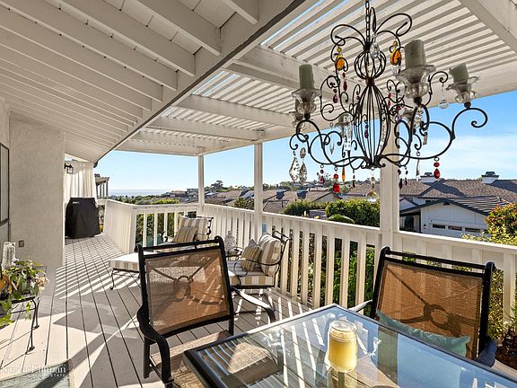 Taking back- up offers, the home is still available for showings. Ideally located in the exclusive coastal community of Jasmine Creek, this home has three levels, three bedroom and two and a half bath. The gated entrance opens to an artistically landscaped courtyard. Once inside the home you will be transformed by the beautiful open floor plan that features sophisticated living space and California casual. The living room hasa cream europa slab fireplace, vaulted ceilings, limestone flooring and an adjoining dinning room. While relaxing on the balcony, savor the breathtaking ocean views from this quintessential coastal abode. The family room adjoins the kitchen providing open space great for entertaining friends and family Refinished wood flooring through out. Downstairs the master retreat includes a walk-in closet, an en suite bath with heated limestone floors. Adjacent to the master is a beautiful large patio area great for entertaining and large enough for a play house, swings or spa. There is a full bathroom, office and guest room. The 24 hour gated community offers 6 tennis courts, pickle ball court, three community pools and a large club house ideal for family reunions, birthday and Holiday parties. The 84 acre greenbelts offer expansive ocean views and is great for dog walking and socializing. Jasmine Creek is a place for all ages to enjoy!!