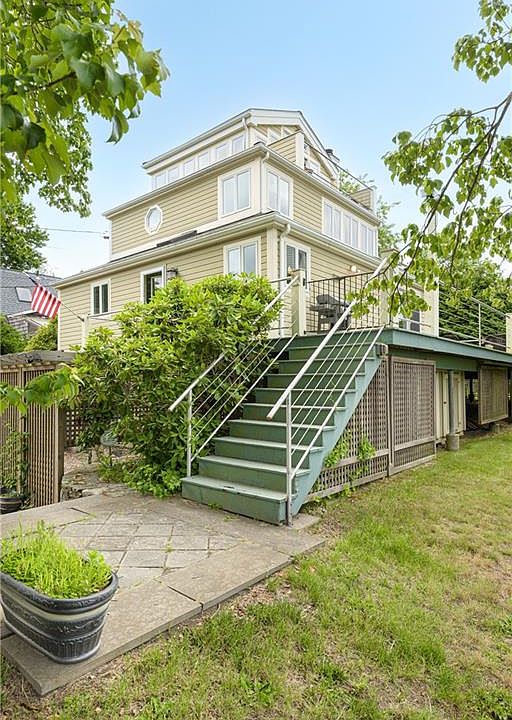 This coastal beauty offers views of Narragansett Bay and Watson Farm. Situated on a quiet street tucked away in the tranquil Jamestown Shores neighborhood. Only a short walk to the water. The multi-level “lighthouse” design contemporary has been tastefully renovated and offers a gourmet kitchen open to a living room adorned with a pellet stove. The sublime primary suite features a water view deck and faces West for magnificent sunsets. The deck on the first floor includes a hot tub and is totally private with a fenced in back yard. Every Fourth of July & New Years Eve you can watch the most amazing fireworks display right from your own deck. Additional highlights include lovely hardwood floors, a one-car garage, ample parking for all your guests, and an approval for 2 Bedroom septic.