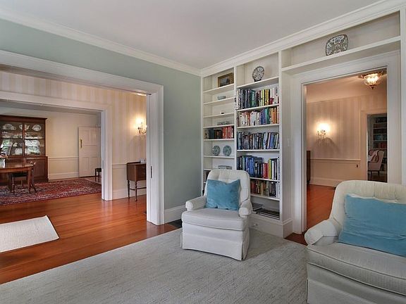 Set in Historic Precinct One on side street. Wonderful detail and charm expected with acre plus private lot. Gracious open foyer with high ceilings. Fireplace sitting room, Banquet size dining room, Eat in White kitchen with Granite counters, desk area, ample counter space and storage, Sliders to deck overlook gorgeous grounds. Formal fireplace family room offers built ins and leads to screen porch perfect for entertaining or just relaxing. First floor office. The second floor has five bedrooms including the updated master suite with custom built cabinets and walk in closet, separate tub and shower, Additional bedrooms all good size with ample closets, The third floor has even more space for aupair, playroom or additional bedrooms. The walk out lower level is also finished and with even more space for game room, gym. Home offers Pocket doors, Gorgeous floors, Butlers pantry, Cedar closet, Laundry located 2nd flr, and basement, Storage shed attached to 2 car garage.Walk to all location