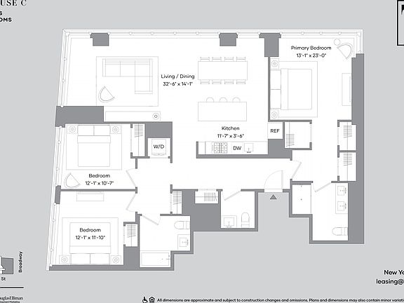 Corner 3 bedroom/2.5 baths with built-in kitchen island and wine refrigerator. Expansive views of the Manhattan Bridge.