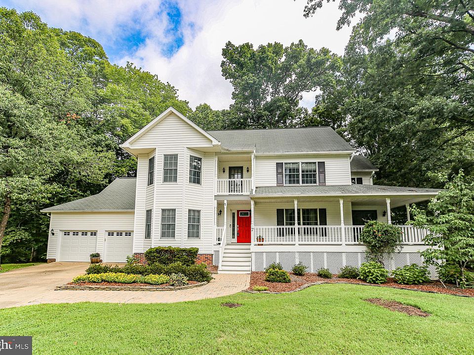 Welcome to this picturesque, established neighborhood filled with beautifully built custom homes on large, lush lots—with no HOA! Over one acre to do with what you wish. As you enter the community, you’re greeted by a sense of space, maturity, and privacy. Nestled quietly at the end of a cul-de-sac, this home offers exceptional tranquility and seclusion. The house is strikingly handsome and inviting. Step inside to a welcoming main level featuring gorgeous hardwood flooring throughout and generous living spaces. The formal dining room includes double French doors that open to an extra-large wrap front porch—perfect for entertaining. The updated kitchen offers Corian countertops, a double sink, stainless steel stove and microwave, double oven, maple cabinetry, pantry, and a light-filled eat-in area. The spacious family room features a wood-burning fireplace and sliding glass doors leading to a fully enclosed porch with access to the back deck. A thoughtfully designed floorplan and quality finishes throughout the main level create a warm and inviting atmosphere. Upstairs, the expansive primary suite boasts a three-bay window, walk-in wardrobe, double vanity, and an updated shower/tub combo. Two additional bedrooms, each with classic wood doors and charming details, share an updated full hall bath with a skylight. The fully finished lower level offers incredible flexibility with a massive rec room featuring a floor-to-ceiling brick wood-burning fireplace and mantel, a fourth bedroom with a closet, window, and direct exterior access—ideal for guests or in-laws. You’ll also find a dedicated laundry room with a window and built-in storage, an updated full bathroom, and an additional flex room that could serve as a home office, hobby space, or workout area. Step outside to enjoy the many outdoor living spaces. The oversized front porch is truly the size of an additional room—large enough for a full dining table or lounge setup..Off the family room a large and very tall screened porch with access to the house and large trex deck that backs to trees for complete privacy, and a handy storage shed. The extra-large two-car garage offers ample storage and workspace. This home offers the perfect blend of space, privacy, and character—just minutes from downtown Fredericksburg, major commuting routes, schools, and parks. A rare opportunity in a no-HOA neighborhood! Extra nice neighborhood, extra nice house!