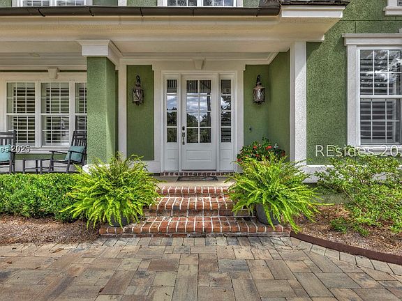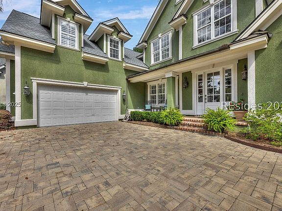 Nestled on a serene, private wooded lot at the end of a quiet cul-de-sac in the gated community of Hampton Hall, this stunning 5-bedroom + office, 5.5-bath residence offers the perfect blend of Lowcountry elegance and modern comfort. A charming paver driveway welcomes you home, setting the tone for refined living just minutes from Bluffton's vibrant heart. Step inside to the spacious first floor, where the luxurious Primary Bedroom Suite serves as a tranquil retreat. The open living area offers a soaring cathedral ceiling and cozy fireplace, ideal for gatherings or quiet evenings. A dedicated office provides a peaceful workspace, while dual staircases, front and back, effortlessly connect to the upper level. The gourmet kitchen is a chef's delight, boasting expansive countertops, abundant storage space, a pantry, a convenient Butler's Pantry, and a built-in wine refrigerator for effortless entertaining. Ascend to the second floor to discover a generous bonus living space and four en-suite bedrooms, each offering privacy and comfort. The oversized fifth bedroom, perched above the garage, presents endless possibilities as a media room, play space, or guest haven. Outdoors, unwind on the expansive covered and screened porch, which flows seamlessly to a patio and a fully fenced backyard backed by deep, lush woods for a true outdoor oasis for al fresco dining or lazy afternoons. The attached two-car garage includes a climate-controlled 10'x13' bonus room with a 10-foot ceiling, ready to transform into your dream storage, fitness studio, home office, or creative space. This home shines with recent enhancements over the past 5 years, including a new roof, sleek updated kitchen countertops, fresh second-floor carpeting, a completely renovated Primary Bath, refreshed Guest Bath, and thoughtful upgrades throughout. Conveniently centered in Bluffton, SC, Hampton Hall delivers unmatched accessibility: mere moments to premier shopping, dining, groceries, and entertainment. Venture under 10 minutes to the enchanting Old Town Bluffton, perched along the pristine May River, or cross the bridge to Hilton Head Island in 15 minutes for 11 miles of white sand beaches, world-class activities, delectable cuisine, and seasonal festivals. This is Lowcountry luxury at its finest ... schedule your private tour today!