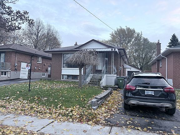 Backing directly onto Dunlop Parkette with no rear neighbours, this well-maintained detached home in Clairlea-Birchmount offers a rare combination of privacy and green space while being close to schools, shopping, and transit. The main floor features 3 bedrooms, living/dining, kitchen and bath, plus a separate finished basement apartment with 1 bedroom, kitchen, bath and a spacious living/dining area. Recent upgrades include a 2015 roof, 2016 gas furnace, central air (2 yrs), owned water tank (2024), vinyl flooring over hardwood (2022), new LED lighting throughout, updated toilets and faucets, 2019 fridge, newer stove upstairs, GE appliances in the basement and LG energy-efficient washer/dryer (2021). Large 1-size garage (professionally lifted/repaired) and long asphalt driveway accommodate up to 4 cars. Main floor vacant and basement currently tenanted month-to-month at $1,600 (40% share of water). No survey available.