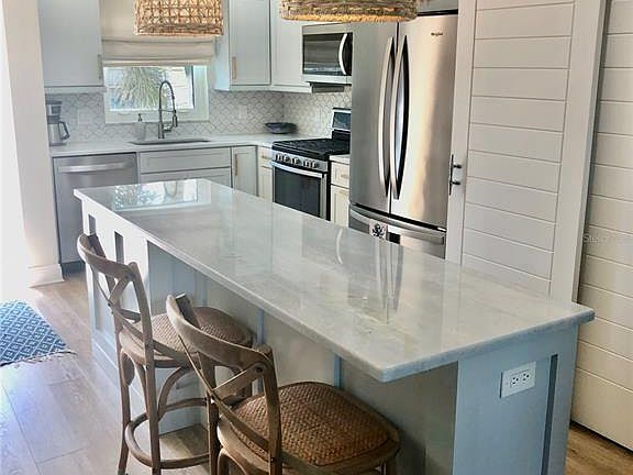 Waterfront and beautiful! Totally renovated top to bottom one bedroom one bath condo with lanai and beautiful views. NEW HVAC, NEW ROOF 2025. Walking distance to Honeymoon Island. Steps to the Dunedin causeway to walk, lay on the beach or rent a kayak. Take the ferry from Honeymoon Island to Caladesi Island for the day with beautiful beaches and a concession stand. Waterfront pool, gym in the clubhouse, tennis and pickle ball courts, bocce ball and shuffle board. Close to charming downtown Dunedin with great restaurants, breweries and shopping. Palm Harbor is close by for great restaurants. And delicious greek food is a few miles up the road in Tarpon Springs..