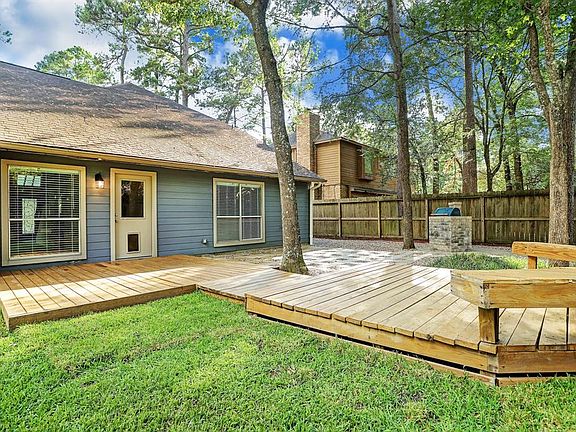 Located in the heart of The Woodlands, this charming home sits on a cul-de-sac street and is within walking distance to restaurants, park and superb schools. Providing lovely curb appeal, fine home offers luscious landscaping, water heater replaced 2018, French drains, SS appliances, new washer & dryer, recently replaced A/C condenser, coils, & motor. Light and bright with a wall of windows, the dine-in, island kitchen opens to a spacious living area with exposed beams, brick fireplace, soaring ceilings, wet bar & half bath! Master bed down boasts high ceilings, dual sinks and walk-in closet. With 3 sizable beds up, one can be used as a game room/ flex room. Backyard is spacious and private with a deck great for relaxing. Updates include: Professional tree removal & trimming, hardscapes, new sod and landscaping, decking replaced & sealed, and fresh interior & exterior paint (2020). Low tax rate. Exemplary Woodlands schools, including highly-acclaimed David Elem & College Park High.