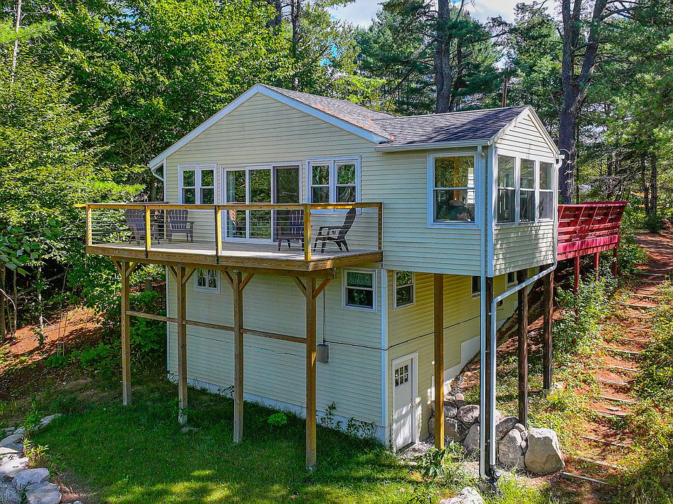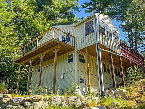 Charming 3-4 Bedroom Year-Round Home Near Shawnee Peak & Downtown Bridgton. Nestled among the pines on a peaceful .66-acre lot, this cozy and inviting year-round home is just minutes from Shawnee Peak and all the conveniences of downtown Bridgton. With numerous recent updates—including a new roof, windows, heating system, water heater, fresh paint, and a new deck with reinforced supports—this home is move-in ready and built for comfort. Offering 3 to 4 bedrooms, the flexible layout includes a first-floor bedroom and full bath with a washer and dryer, perfect for convenient single-level living. The small, but welcoming mudroom leads to a galley kitchen, a spacious dining area, and a large great room that opens to a brand-new deck with water views. Enjoy your morning coffee or evening sunsets from the deck or from the bright and beautiful sun porch. The lower level features another generous great room, three additional bedrooms, a full bath, and access to a lower-level storage area and exit.