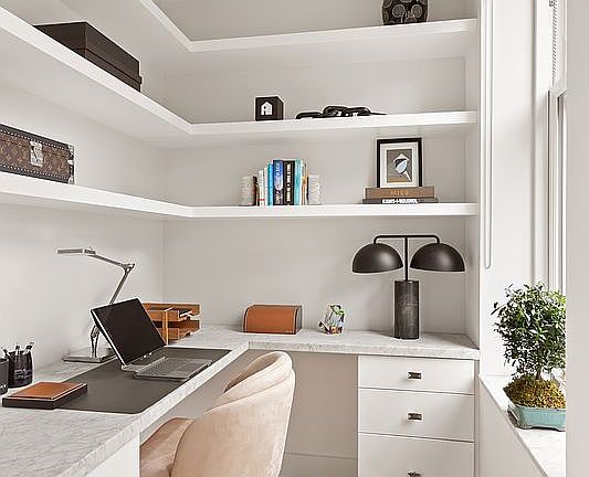 The open chef’s kitchen showcases restaurant-sized Sub-Zero and Wolf appliances, including a six-burner range, steam oven, and commercial-grade proofing oven, all set against striking Carrara marble countertops and backsplash. Three bedrooms each feature en-suite marble baths: the skylit primary suite offers open eastern exposures for all-day light, three walk-in closets, and a spa bath with soaking tub, heated floors, and a Calacatta gold marble slab shower. The second bedroom also enjoys bright eastern views, while the third bedroom has a skylight and queen-size Murphy bed—easily converts between guest room, lounge, or library. In addition, dedicated home office with southern exposure, temperature-controlled wine closet, abundant storage, and a Carrara marble laundry room with half bath complete the thoughtful interior.