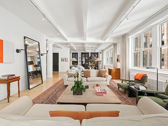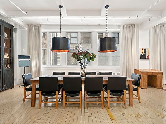 Residence 6R at The Holtz House offers 2,305 square feet of authentic Flatiron loft living with soaring 11-foot beamed ceilings, oversized windows, and triple exposures to the east, north, and west. Privately situated for exceptional tranquility, this residence is configured as a spacious two-bedroom and is convertible to a three-bedroom.