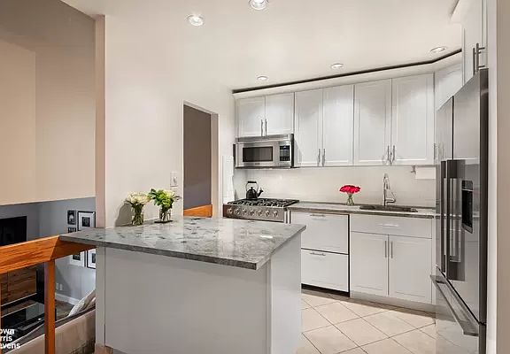 JUST REDUCED! Welcome to this unique 1 bedroom, 1.5 bathroom triplex home in the heart of Murray Hill! Enter on the main level which boasts a newly renovated kitchen with center island, generously-spaced separate dining area with a custom bar, and a spacious half bath with storage. The chef's kitchen features stunning SoHo grey quartzite countertops, custom cabinetry, Viking stove and microwave, Fisher & Paykel refrigerator and dish drawers, and subway tile backsplash. Descend the wooden staircase to the lower level and enjoy the spacious and bright living room with 16 foot ceiling, charming Juliet balcony, cozy wood burning fireplace, custom built-in desk, and ample storage via built-in cabinets. Head upstairs where you'll find the master suite complete with an abundance of high-gloss built-ins, spacious walk-in closet, outdoor terrace, and full en-suite bathroom with beautiful ceramic tile work. The Antoinette is a full service Cooperative with 67 units and 16 floors. It features a 24 hour doorman, live-in super, and on-site laundry. Great location close to major transportation via the 4, 5, 6, N, R, F, M, B, D and PATH trains. Pied-a-terres, gifting and guarantors, and in-unit washer dryer permitted subject to board approval. Subletting allowed after 1 year for a maximum of 3 years with Board Approval. Sorry, no dogs.