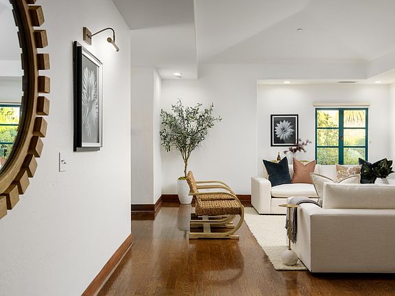 Featuring a 900+ sq ft terrace with mountain views, an outdoor kitchenette & seamless indoor-outdoor living. Natural light streams through multiple sets of French doors, highlighting oversized wide hallways, lofted ceilings, hardwood floors & Mediterranean details.