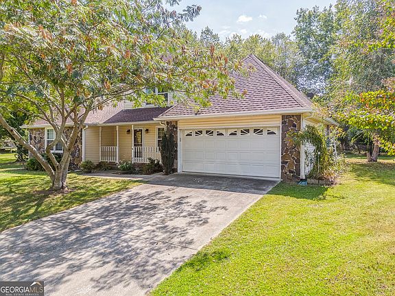 A welcoming front porch invites you into this charming ranch-style home situated on two spacious lots. Inside, a cozy fireplace and gleaming hardwood floors create a warm atmosphere in the living area. The kitchen offers classic cabinetry, an eat-in nook, and flows easily into a separate dining room perfect for hosting. Comfortable bedrooms are complemented by a bath featuring a double vanity for added convenience. Step outside to a private patio overlooking the generous yard, complete with a storage outbuilding offering endless possibilities. With its extra land and inviting layout, this property provides both comfort and functionality. Conveniently located near shopping and local restaurants, it blends peaceful living with everyday accessibility.