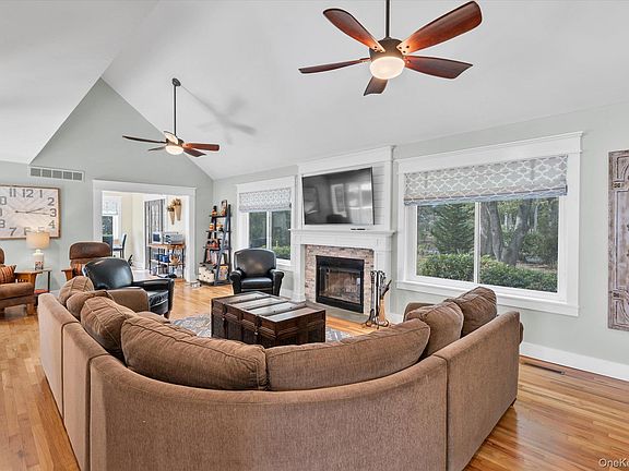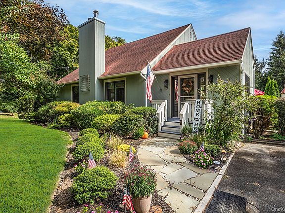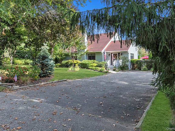 Welcome to your Jamesport Retreat! This meticulously maintained 3-bedroom, 2-bath cedar-clad saltbox contemporary sits in North Wind Estates, at the heart of North Fork wine country. Set on an impeccably landscaped private lot with mature plantings, it features an 18x36 ft pool surrounded by wide decking—ideal for entertaining or relaxing. Inside, the sun-filled living room with wood-burning fireplace and cathedral ceiling opens to the kitchen and dining areas, which flow out to the deck. A flexible third bedroom/office is also on the main floor. Upstairs, two bedrooms overlook the living space below; the primary has its own deck with views of the pool and gardens. Additional highlights include central air, hardwood floors, newer windows, irrigation, custom moldings, and a full basement with outside entrance. Just minutes to fine dining, shopping, glorious sunsets at Iron Pier beach or sugar sand South Jamesport beach, wineries, hiking trails, off roading, and all of the activities the North Fork offers, 7 Eileen Circle is the perfect North Fork getaway or primary home.
