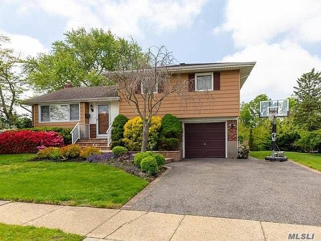 Beautiful Ext Split with Cathedral Ceilings featuring an Open Concept w Main Level Great Room- Two sets of Sliders & Multiple Windows offering lots of natural light. Lg Ext Eik w/Young appliances; Maple Cabinets & Sliders to 3-tier deck overlooking park like yard, Formal Living Room, Formal Dining Room all on main level; recessed lighting; hardwood floors; Extended Den w/home office area, full bath, & Sliders to yard; Lg Mstr Brm, Two add'l brms w/ lg closets; full basement w/Workshop area; Laundry & Storage w/ add'l playroom or office; New CAC, IGS, Gas Heat-Young Burner & Hot Water Heater, 200 Amp; 3-Tier Decking w/Outdoor Speakers; Close to All- Tax w/Star $12,719..Bethpage SD-Won't Last!