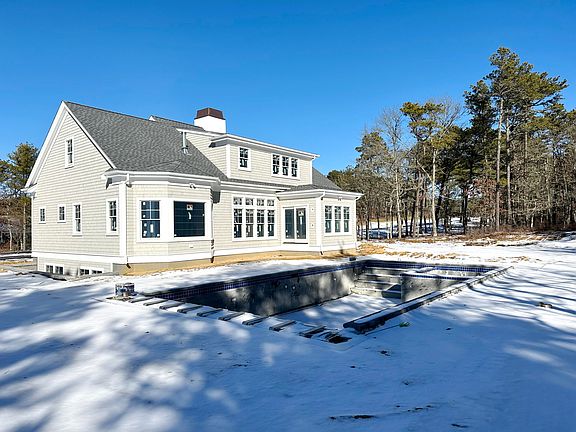Elijah's Woods is centrally located close to Chatham, Brewster, and Orleans and has sidewalk access to restaurants and shopping in East Harwich plazas. Luxury home to be completed on time to enjoy 2024 summer season on Cape Cod! A level of craftsmanship that says ''quality'' is evident throughout this 3,665 sq. ft. residence. The open-concept living area features a dramatic great room with a coffered ceiling, gas fireplace, and custom cabinetry. The kitchen boasts a 4'X 8'6'' island, a high-end appliance package and a breakfast nook with sliders to the backyard patio, pool, firepit and outdoor shower. The butler's pantry with a wet bar, the formal dining room, or perhaps a study is off the kitchen. The first-floor primary suite offers a walk-in closet and a private luxurious bath with a double sink vanity. As you enter the house from the 2-car garage is the mud room, a laundry room with a utility sink, and granite counters. Two spacious bedrooms and a full bath are on the second floor plus a den/office. The fourth bedroom is a second floor ensuite and is reached by a separate staircase. An outdoor shower, a sprinkler system, a paved driveway, and a professionally landscaped yard Interior photos are from a similiar home.