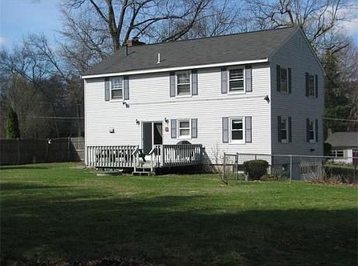 Spacious garrison set on a level 1/2 acre lot in neighborhood setting!Walking distance to elementary school, playgrounds,rec fields and beaches.1st floor has livingroom with hardwood flooring,eat-in kitchen w/gas stove and new slider to 16x12 deck,fam.room w/berber carpet and computer desk (included),and 1/2 bath w/laundry.2nd floor has front-to-back master,3 additional rooms and full bath.Finished room in lower level offers extra elbow room and access to 1-car garage. Large,fenced-in back yard!