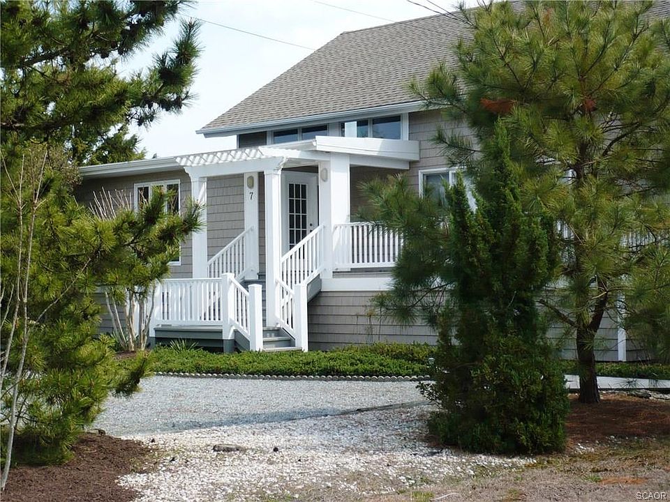 Steps to the ocean! Charming 2,719 sq. ft. 4 bedroom,3.5 bath beach home nestled in tranquil North Shores. An open floor plan with 1,078 sq. ft. deck overlooking mature pines that provides a private oasis on a raised deck and screened vistas. Features include: 1st and 2nd floor master suites, sun filled 2 story living room, cedar impression siding, hardwood, a wet bar, outside shower, storage shed & large street side parking area edged in varied mature trees . While constructed in 1967 the effective age of this home is 20 years as the home has undergone extensive renovations and is meticulously maintained. A 1989 complete rebuild expanded the home by about 1,000 sq ft. Please ask your agent for the fact sheet outlining this work. Improvements since include: new roof 2006,cedar impression siding 2008, 2 zone central AC 2011, and stainless appliances in 2102. Residents of North Shores enjoy a swimming pool, tennis courts, a marina, and private beach. Please watch the virtual tour.