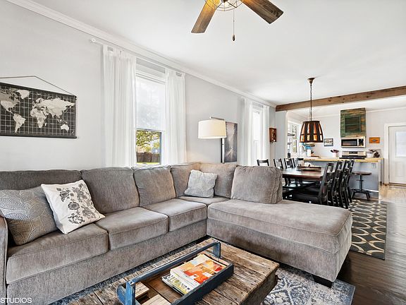 Welcome to the stunning renovated modern farmhouse located in the charming historic village of Three Oaks. This gorgeous four-bedroom home boasts a beautiful blend of vintage details and modern finishes, providing a unique and stylish living space.