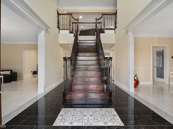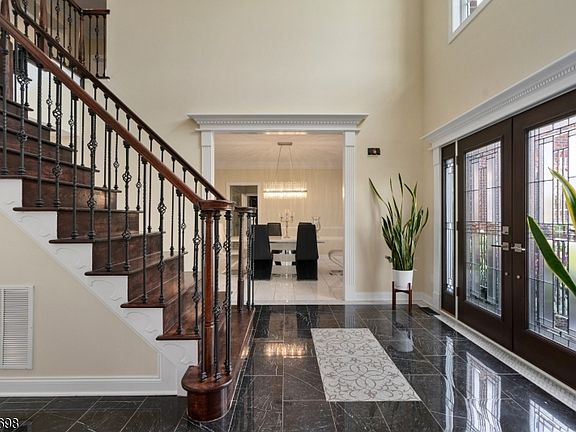 Welcome to this impressive colonial in a gorgeous development! This home offers space, comfort, and high-end finishes throughout. The grand foyer features marble flooring and a crystal chandelier, leading to formal living and dining rooms, a private office, and a large family room with a floor-to-ceiling stone fireplace. The kitchen includes 42-inch cabinets, marble countertops, and modern appliances. Upstairs, the primary suite has four walk-in closets and a spacious bath with a jetted tub, dual-head shower, and double sinks. The Princess Suite offers its own updated marble bath and walk-in closet, while bedrooms 3 and 4 share a Jack & Jill bath with granite counters. A second-floor loft provides added living space. The finished basement includes a wet bar with quartz counters, epoxy floors, recessed lighting, a full marble bath, and a flexible bonus room. Outside, enjoy a saltwater pool (2021) with waterfall, spa, sun shelf, and jumping jets all controlled by Wi-Fi. The 18x18 pavilion includes LED lighting, outdoor TV, ceiling fan, and a full outdoor kitchen, surrounded by perennial landscaping. This home has everything you need inside and out! Come check it out before it's gone! Additional features include: Owned solar panels, new roof in 2007, and new water heater in 2022.