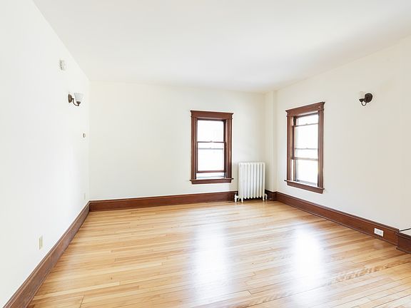 First-floor, two-bedroom apartment with a large living room and open kitchen layout. Kitchen includes electric range and dishwasher. Original hardwood floors throughout. Both bedrooms have closets. One full bathroom with custom-tiled shower and built-in storage. Access to shared front porch. Laundry in building. Gas heat and gas hot water. Located one block from UVM and Fletcher Allen Hospital.