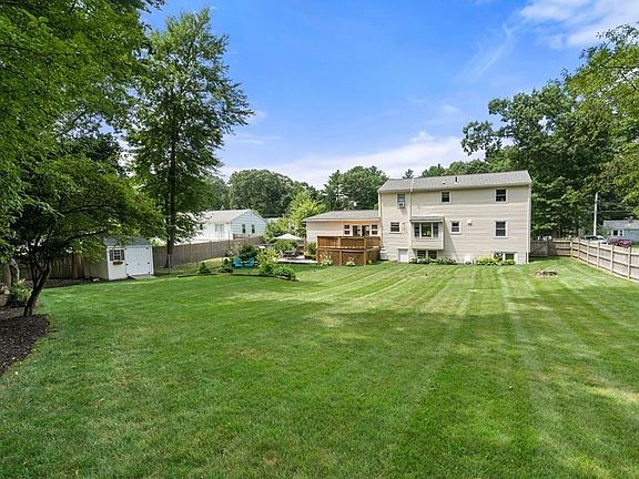 Offers, if any, are due 5pm on Tuesday! Open House Tuesday 12-2pm. PERFECT backyard for a BBQ. Move-in Condition! Quiet cul-de-sac with wonderful curb appeal behind Walpole Country Club. Comfortable living in this 4 bed, 2 bath home with 1 car garage on .41 acres. The 1st floor includes a gracious living room, dining room, updated eat-in kitchen with granite counters, stainless steel appliances, and 1 bedroom with a full bath, plus mudroom accessible to garage. 3 more bedrooms with a full bath on the 2nd floor, 2 are extra-large with tons of storage space. Partially finished basement with room to grow. Brand new washer/dryer! Multiple renovations in the last few years, including new roof, new furnace (2019), improved front decks, driveway, walkway, Kitchen, and Baths. Beautiful property with manicured plantings, huge fenced grass area, a newly stained back deck off house and patio area perfect for entertaining, storage shed, and dog run. Easy to Rt 1, 95 & 495.