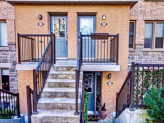 Contemporary 2+1 Bedroom Condo Townhome in Prime Toronto Location of Davenport Village! Beautifully maintained home featuring 2 spacious bedrooms plus a large 3rd-floor den-ideal as a home office, media, study, or optional 3rd bedroom. Includes 2 modern washrooms, with a renovated 2nd floor bathroom. Stylish kitchen boasting with granite countertops, stainless steel appliances, and breakfast bar. Bright open-concept living/dining area with hardwood floors and in-suite laundry and closet. Second-floor primary bedroom offers a generous walk-in closet and private balcony with clear sightlines. Third-floor den/media room/3rd bedroom opens to an expansive private rooftop terrace - perfect for entertaining or outdoor relaxation. A rare offering with modern finishes, flexible living spaces, and clear views. Located steps to cafés, restaurants, parks, convenience stores, groceries, and pharmacy. Locker and Parking included. A must-see home that checks all the boxes!