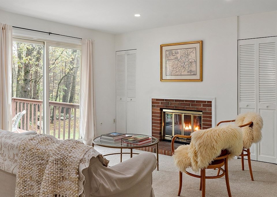 Welcome home to a pristine, sun-filled end-unit condo in coveted Mainstone Farm’s Turkey Hill Village: this 1-bed + office/guest room, 1.5-bath home offers 1,276 SF of single-level living with private entry and attached garage. Enjoy a gracious layout: dining room, eat-in kitchen with abundant storage and 2022 refrigerator, and a light-filled living room with wood-burning fireplace and glass doors to a large deck overlooking stone walls and woodlands. The spacious primary suite features an enormous walk-in closet and ensuite bath with separate vanity. A flexible bonus room is perfect for guests or a home office, and a full unfinished lower level offers prime potential for expansion. Additional highlights include in-unit laundry, central air, and new garage door opener, and enjoys one of the largest front lawns in the HOA as an end-unit! Set on 14+ acres with pool, tennis, and walking trails, this serene community blends convenience and natural beauty with timeless New England charm