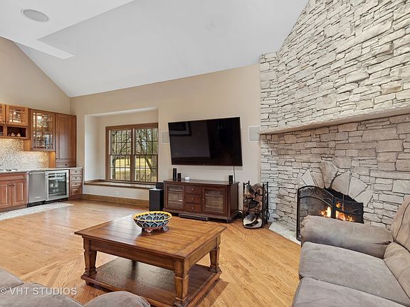 Welcome to your Gorgeous WATERFRONT home! This magnificent two-story home offers the perfect blend of elegance, comfort, and picturesque surroundings. Nestled in a unique WATERFRONT location, this residence boasts breathtaking views. As you approach the home, you are greeted by the Pennsylvania Blue Stone Walkway and beautifully landscaped yard. Once inside, you'll notice the seamless flow between the kitchen, living and dining spaces. The sliding doors off the family room bring the outdoors in and allows for effortless entertaining from your Outdoor Kitchen Oasis. Beautiful Pennsylvania Blue Stone Pavers, Buffet Counter with Sink/Ice Bin, Granite Counters, Viking Stove/Grill and Fire Pit overlooking the Gorgeous Yard and POND. The heart of this home is the UPDATED Eat In GOURMET KITCHEN, equipped with Top Of The Line Viking Appliances, Oversized Frigidaire Refrigerator/Freezer, Custom Cabinetry, Granite Counters, Custom Backsplash, Pot Filler, Island & Walk in Pantry. The Kitchen opens to the Vaulted Family Room which boasts a Beautiful Stone Fireplace with Custom Built Cabinetry including a Full Wet Bar, Dishwasher, Refrigerator & Ice Machine. Perfect for cozying up on chilly evenings. Large windows throughout flood the home with natural light. With 4 bedrooms, 3.2 bathrooms and an office, this home offers an abundance of space for a growing family. The Master Suite is a Private Retreat in itself, complete with Separate Vanities, Spa-Like Soaking Tub, Separate Shower and Custom Walk In Closet. 3 additional Spacious Bedrooms, another on suite and 3rd separate full bath. The Oversized BONUS ROOM with Spectacular Stone Fireplace, Vaulted Ceilings and Hardwood Floors can be easily tailored to meet all of your families needs! The FINISHED BASEMENT provides additional Space with Custom Cabinetry, Granite Counters, Full Wet Bar and Beverage Refrigerator. You'll love the Gaming Area, Exercise Room & 1800 Bottle Wine Cellar! This unique space offers Endless Possibilities for Entertaining & Relaxation. For car enthusiasts or those in need of extra storage space, the OVERSIZED 4 CAR ATTACHED GARAGES provide ample room for vehicles, tools, and equipment! Large Mud/Laundry Room and a separate private entryway to your Bonus Space. Located within the Fantastic Lake Zurich High School District, THIS HOME HAS IT ALL!