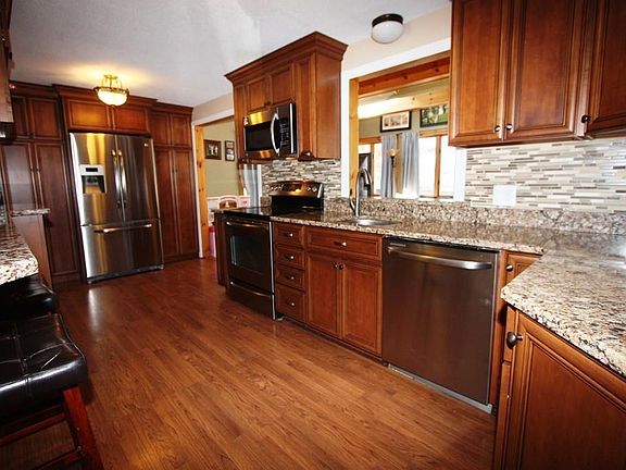 Pride of ownership shines through this immaculate 3 bedroom updated Ranch, close to the center and great highway access! New kitchen with custom Maple cabinets, pullouts and soft close drawers, Quartz counter, new SS appliances including dishwasher, range, microwave and refrigerator! Seprate dining room with crown molding, family room with vaulted ceiling and exposed beams, pellet stove and access to deck. Lower level is nicely finished and offers a great extra family room, playroom, office or excercise area! This great home is vinyl sided with replacement windows and a new roof! Large flat yard, swing set and shed plus a payio area with firepit!
