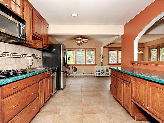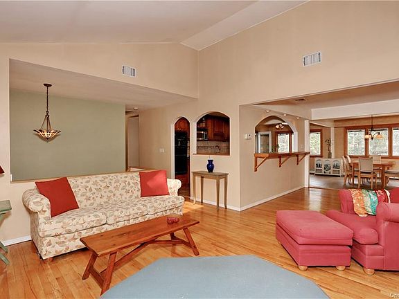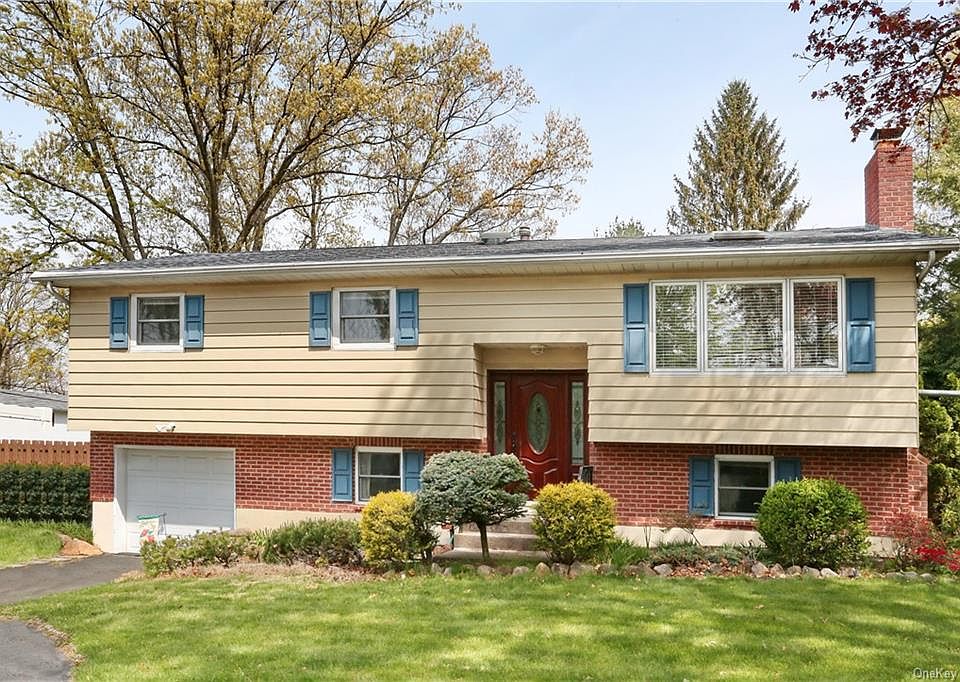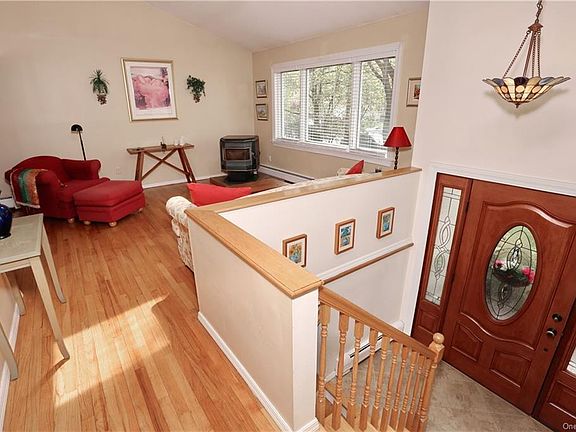 "LIVE ON VACATION"- Beautiful, inviting expanded 4 bedroom, 2.5 bath bilevel in the Clarkstown School District boasts open-concept living, dining and kitchen area. Features include vaulted and cathedral ceilings, hardwood floors, skylight and an abundance of Pella windows filling the open space with plenty of natural light, fully equipped kitchen with stainless steel appliances, double oven and french doors to oversized deck overlooking pool with gas hook up, perfect for BBQ's, living room with pellet stove, huge formal dining room, master bedroom with ensuite bath and cedar closet, two sizeable bedrooms and full bath on main level. Lower level includes family room with gorgeous stone wood burning fireplace, bedroom, powder room, laundry room and separate entrance. Fabulous huge backyard oasis with a in-ground pool for summer staycation and entertaining. One-car garage and separate storage area under deck. All this in a great location, close to town, restaurants, schools, shopping, parks and highways. Low Taxes!!!